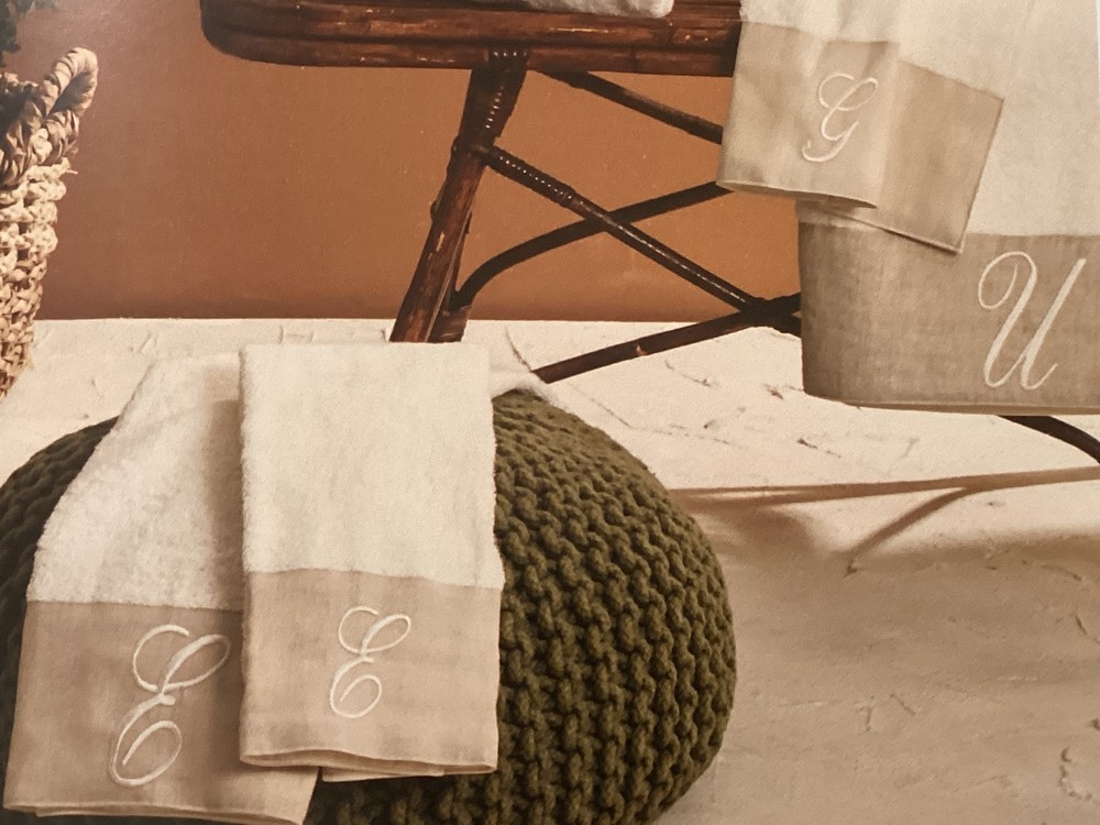 HomeBathroomPAIR OF TOWELS WITH LETTER 100% COTTON with linen border